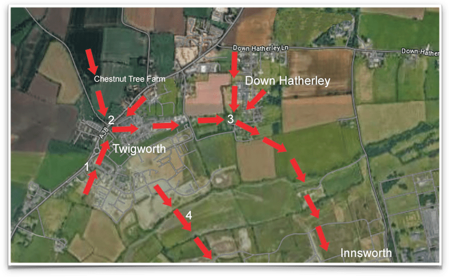 - New pipeline from Twigworth Green to Innsworth – Clogged pipes have caused manholes to burst at least twice in the past two years. Drains are frequently blocked.