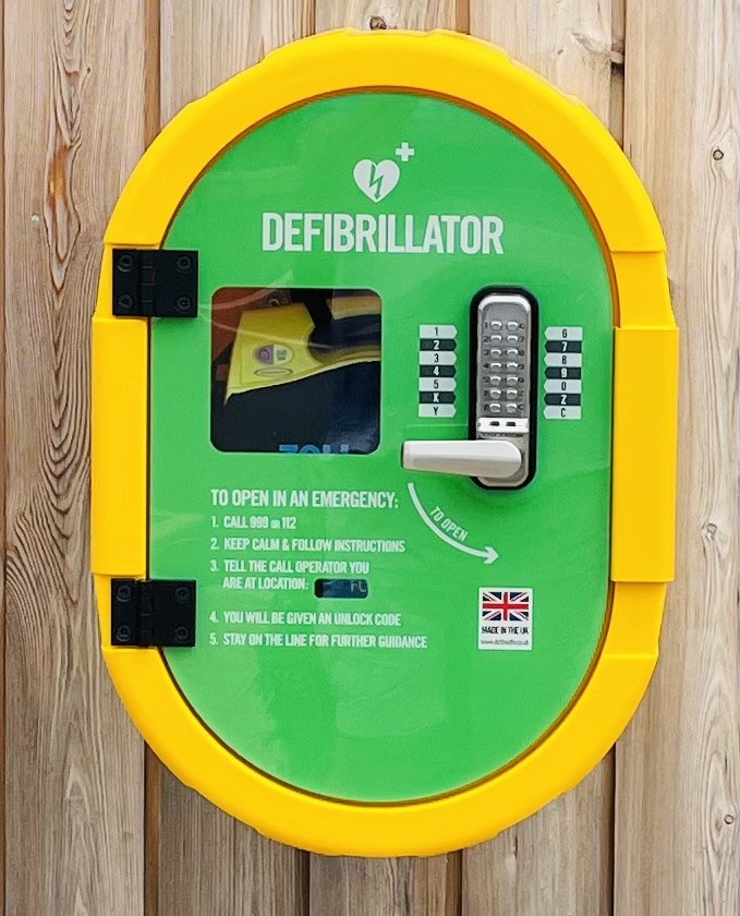The Defibrillator is stored within a yellow DefibSafe which can only be accessed by a security code on the digital keypad, this code can only be provided by the Emergency Operator when calling 999.