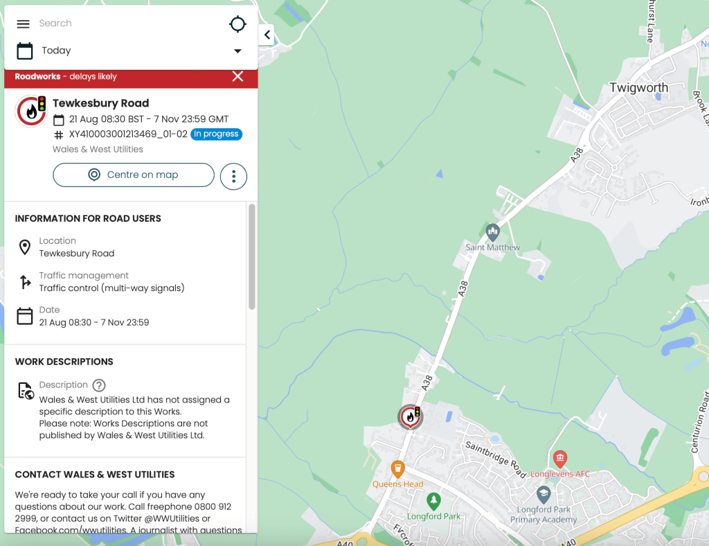 Please be advised that the roadworks which are currently in progress along the A38 between Twigworth and Longford, are planned to continue until 7 November 2025.