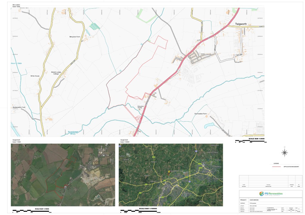 PS Renewables who are developing the Cox’s Brook Solar Farm on land to the west of Twigworth Court Farm, which was granted planning permission by Tewkesbury Borough Council in April 2024 under reference: 23/00441/FUL are now preparing to commence construction works pursuant to the planning permission.