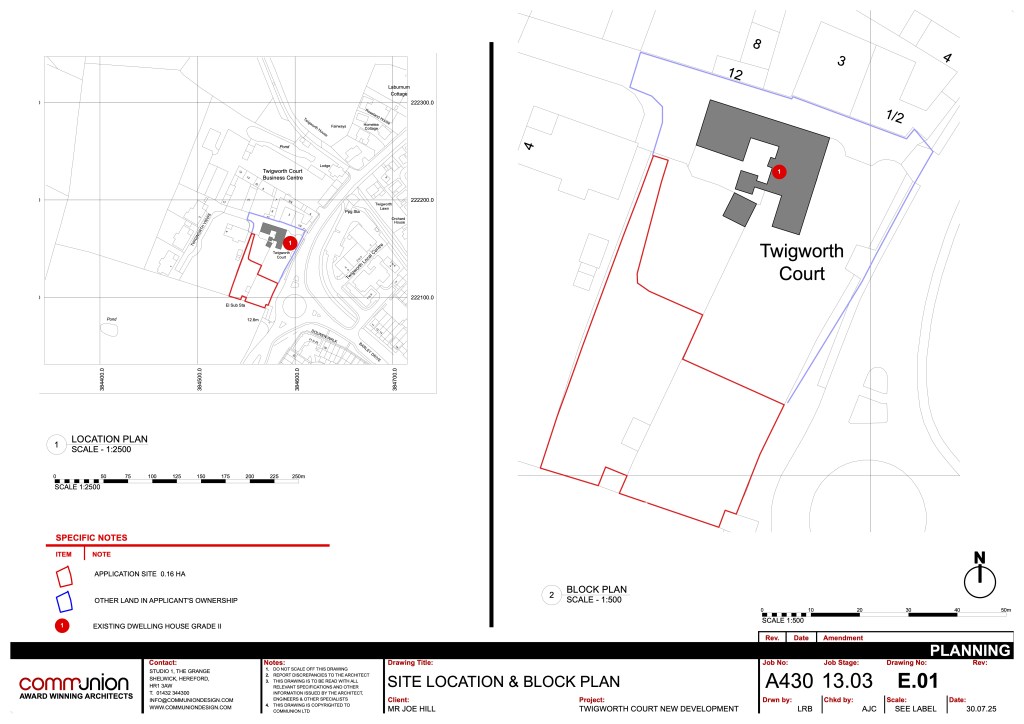 Tewkesbury Borough Council have received a Planning Application for the construction of two new dwellings at Twigworth.