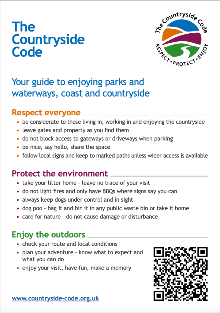 If you’re out walking, or exercising your dog in the rural parts of the parish please follow the guidance set out in the code.