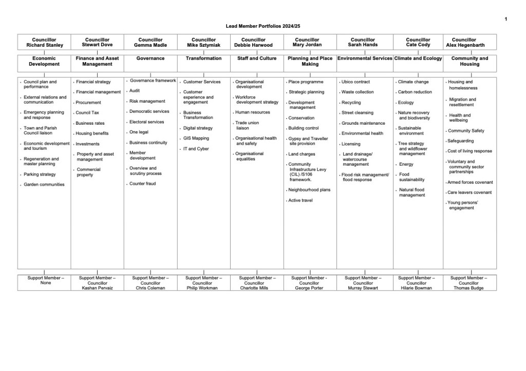 Although named Parish Councillors have a “lead” role, all Parish Councillors have a joint responsibility for Council matters eg. Highways & PRoW; Community Engagement; Planning; Finance and Environment issues.