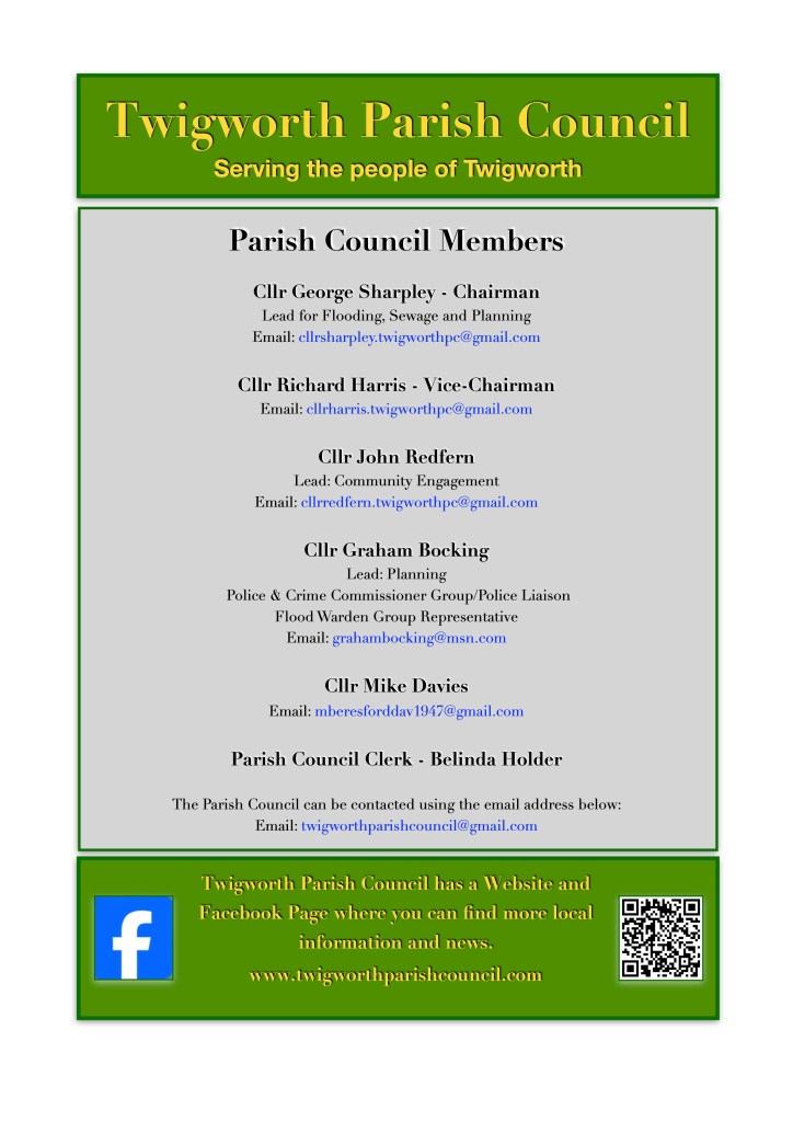 EMail: cllrsharpley.twigworthpc@gmail.com