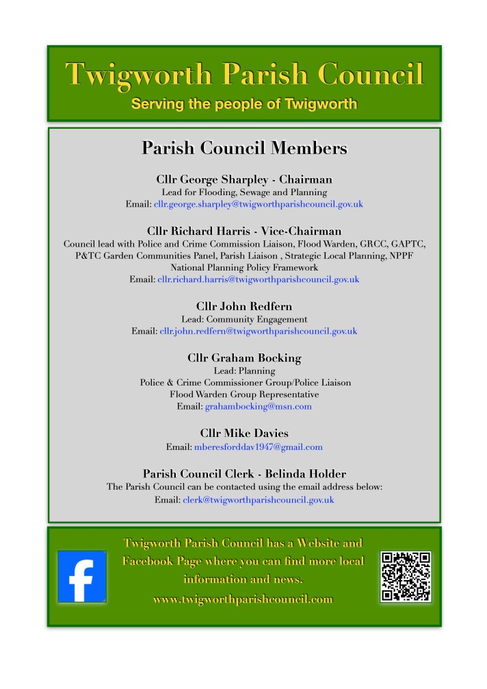 Email: clerk@twigworthparishcouncil.gov.uk